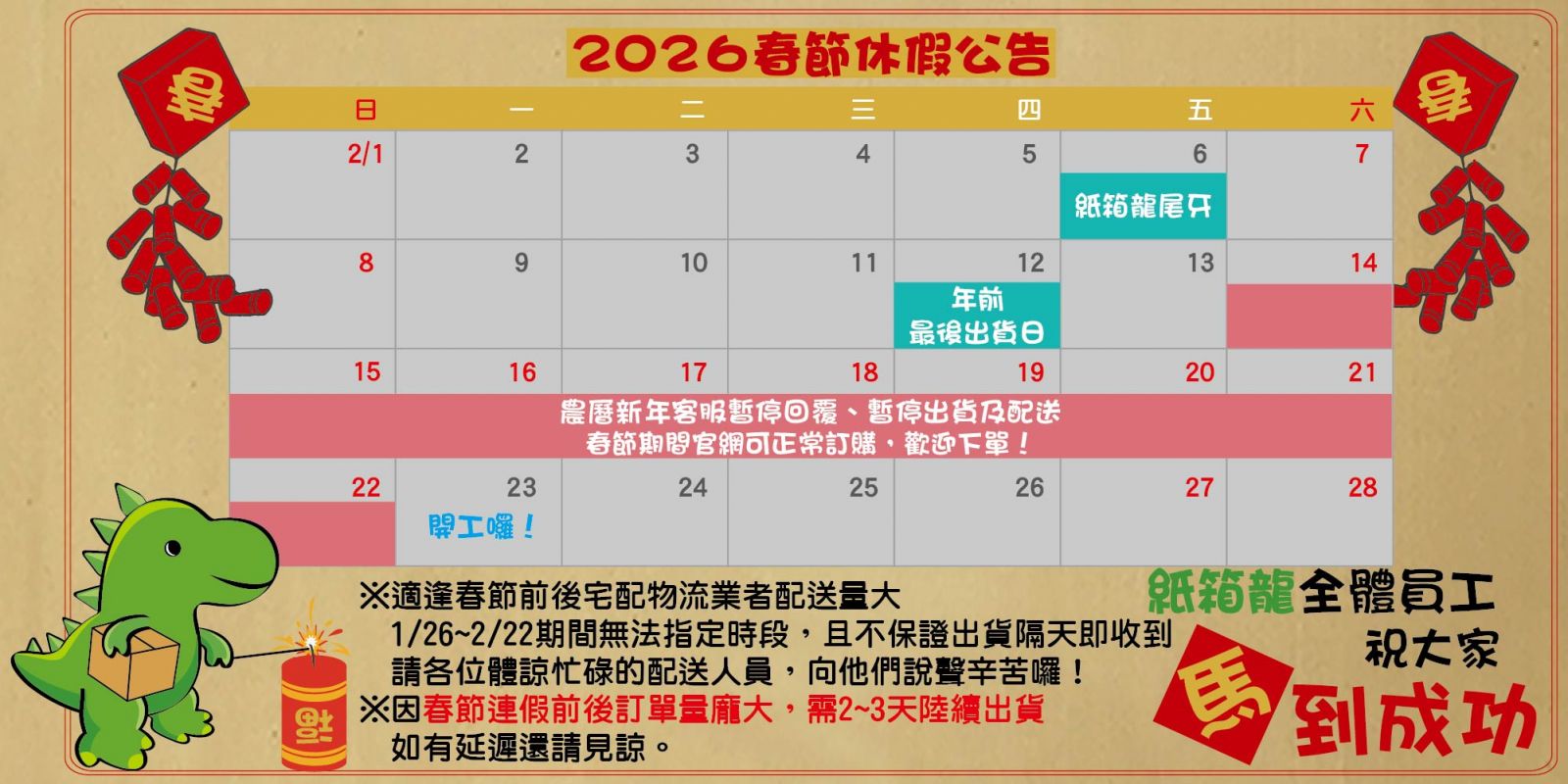 2026春節休假公告