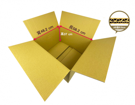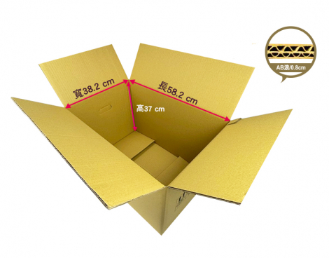 • 用途:宅配紙箱、搬家紙箱、收納紙箱,外徑:56.8x41.8x43CM,外徑總和:141.6CM,材質:五層AB浪 厚度:0.8CM,特色:手把孔