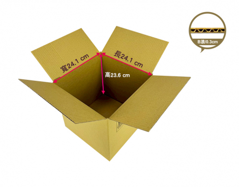 | 51 | 0101A317 | 24.1*24.1*23.6 | 棕色B浪 厚度3mm | 用途:超商紙箱、宅配紙箱,外徑:25x25x25CM,外徑總和:75CM,材質:三層B浪 厚度:0.3CM,特色:印有開箱錄影和警示標語 | 數量 | |||||
