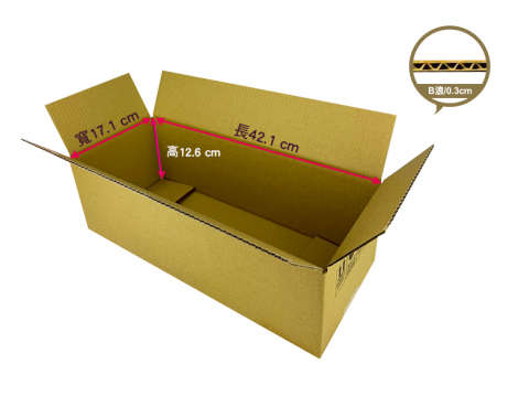 | 54 | 0101A319 | 42.1*17.1*12.6 | 棕色B浪 厚度3mm | 用途:超商紙箱、宅配紙箱,外徑:43x18x14CM,外徑總和:75CM,材質:三層B浪 厚度:0.3CM,特色:印有開箱錄影和警示標語 | 數量 | |||||