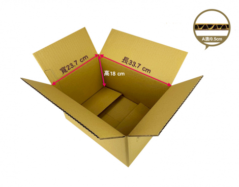 | 58 | 0101A335 | 33.7*23.7*18 | 棕色A浪 厚度5mm | 用途:超商紙箱、宅配紙箱、A4尺寸紙箱,外徑:35x25x20CM,外徑總和:80CM,材質:三層A浪 厚度:0.5CM,特色:印有開箱錄影和警示標語 | 數量 | |||||