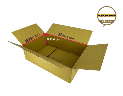 | 70 | 0101A322 | 44.1*29.1*13.6 | 棕色B浪 厚度3mm | 用途:超商紙箱、宅配紙箱,外徑:45x30x15CM,外徑總和:90CM,材質:三層B浪 厚度:0.3CM,特色:印有開箱錄影和警示標語,須知:若要購買空白箱,請搜尋賣場同尺寸,料號0101A049購買 | 數量 | |||||