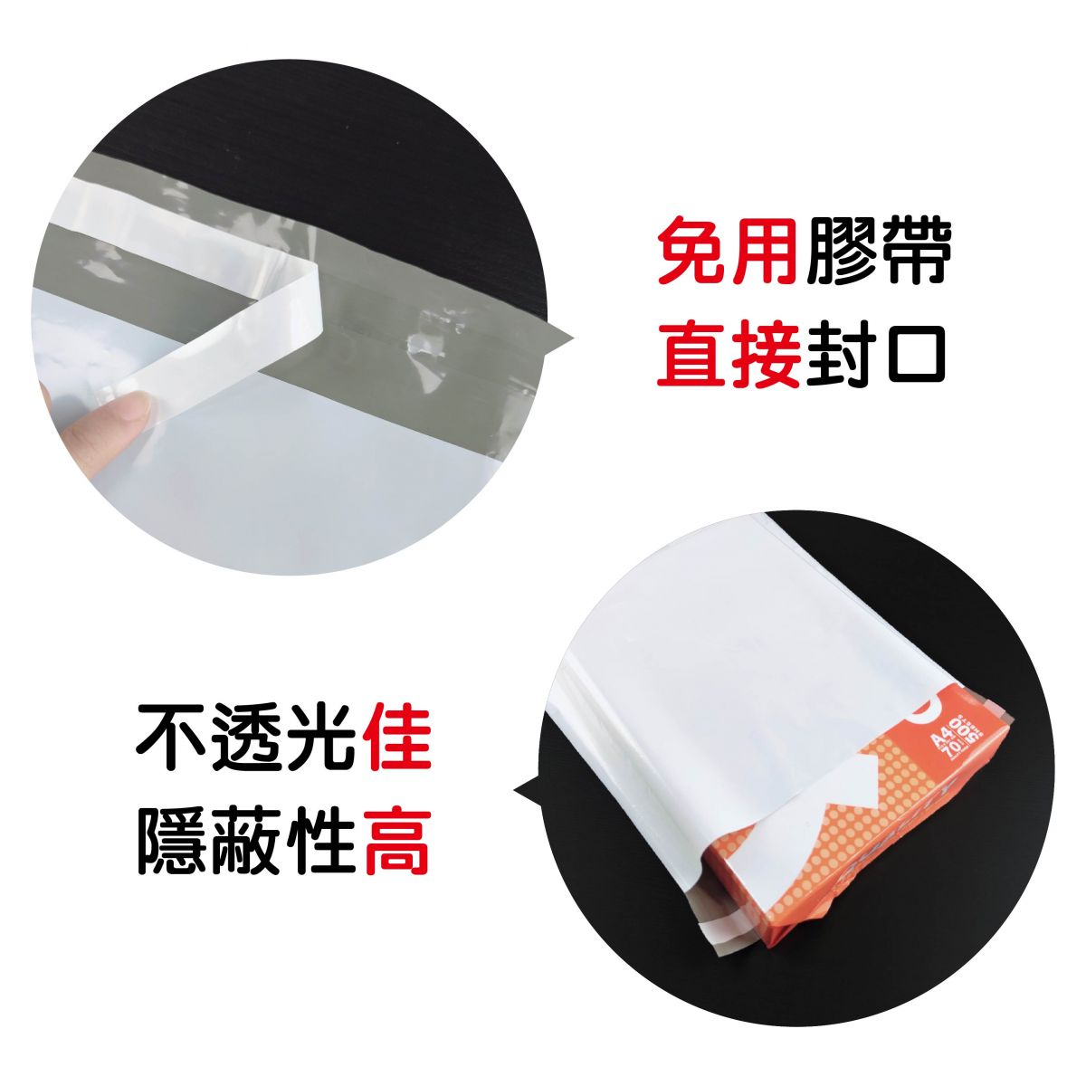 特色:直接封口、免用膠帶、不透光隱蔽性高,防潮、防水性佳,韌性好、不易撕開、撕開即破壞