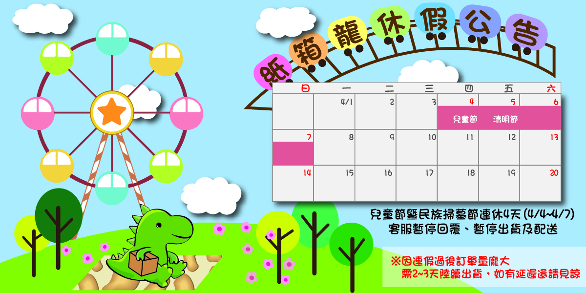 113/04/04(四)~113/04/07(日)兒童節&清明節休假公告