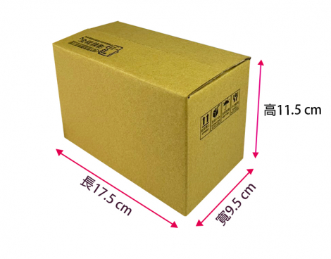 - 用途:超商紙箱、宅配紙箱,外徑:17.5x9.5x11.5CM,外徑總和:38.5CM,材質:三層B浪 厚度:0.3CM,特色:印有開箱錄影和警示標語,須知:若要購買空白箱,請搜尋賣場同尺寸,料號0101A087購買