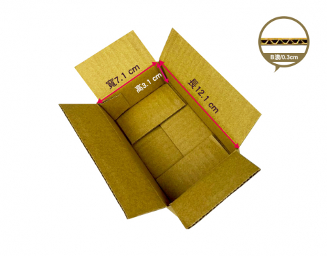 2 | 0101A074 | 12.1*7.1*7.6 | 棕色B浪 厚度3mm | 用途:超商紙箱、宅配紙箱,外徑:13x8x9CM,外徑總和:30CM,材質:三層B浪 厚度:0.3CM | 數量 | |||||