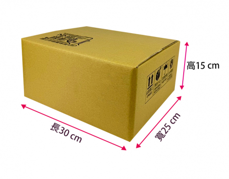 - 用途:超商紙箱、宅配紙箱,外徑:30x25x15CM,外徑總和:70CM,材質:三層B浪 厚度:0.3CM,特色:印有開箱錄影和警示標語,須知:若要購買空白箱,請搜尋賣場同尺寸,料號0101A051購買