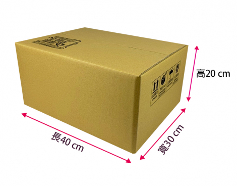 - 用途:超商紙箱、宅配紙箱、收納紙箱,外徑:40x30x20CM,外徑總和:90CM,材質:三層A浪 厚度:0.5CM,特色:印有開箱錄影和警示標語